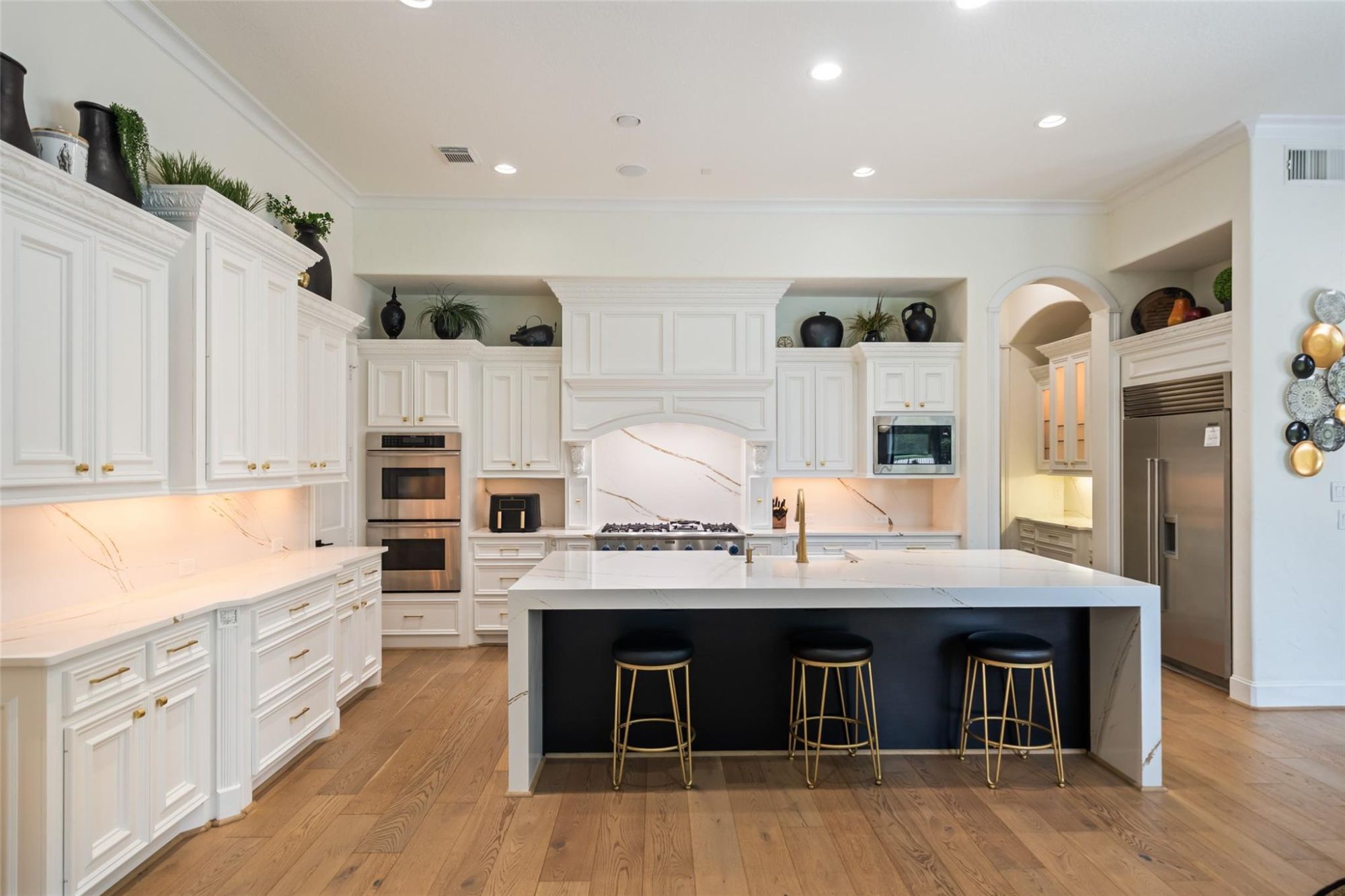 Inside you can also find hardwood flooring, a cast stone fireplace, and elegant arched entryways.