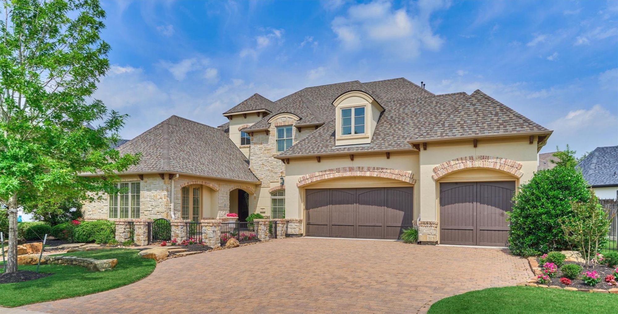 This 5,593 square foot Tuscan-inspired home in Sterling Ridge features 5 bedrooms, 5.5 bathrooms, spacious 4-car garage, media room, Viking appliances, and a smart home system with Sonos whole-home audio.
